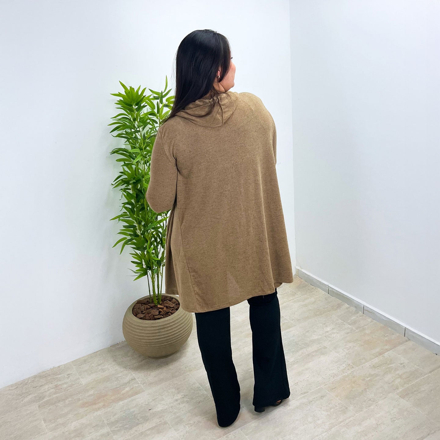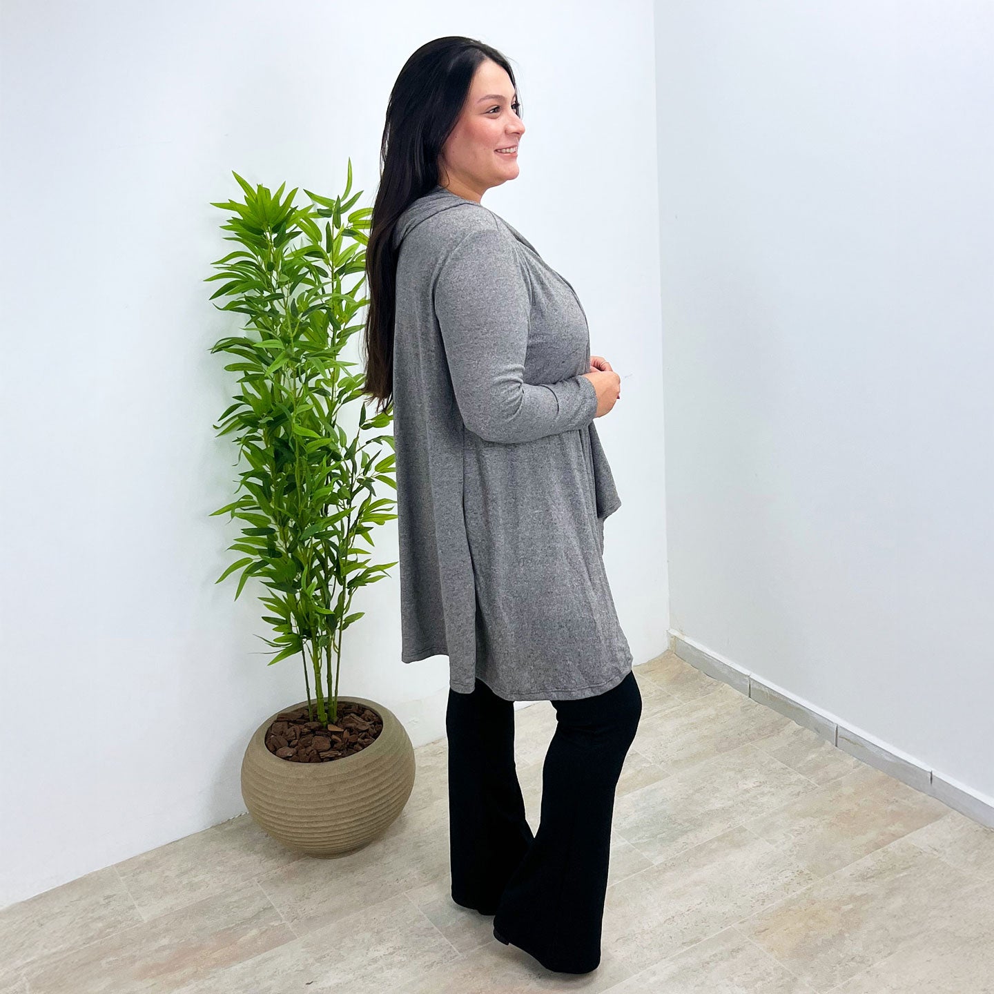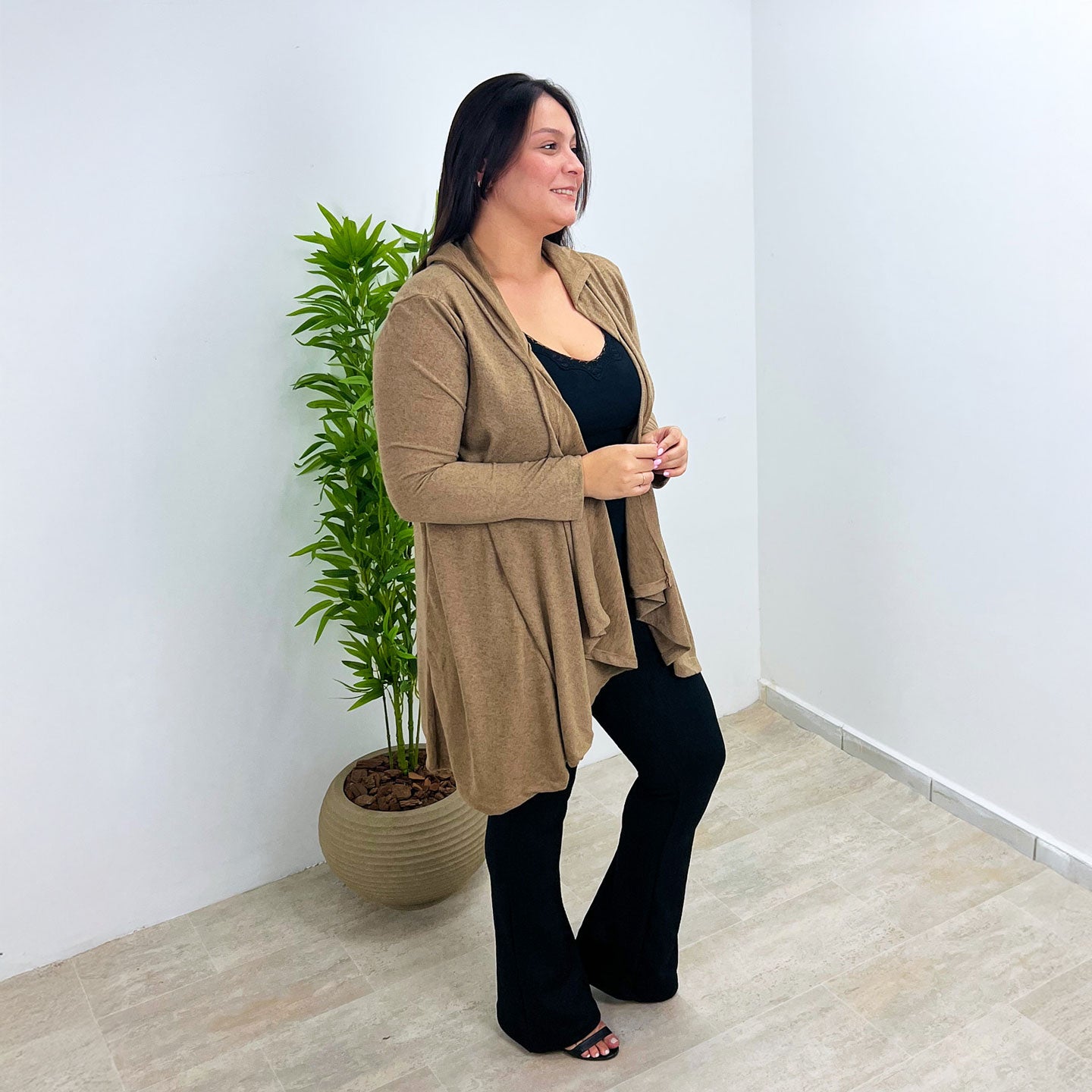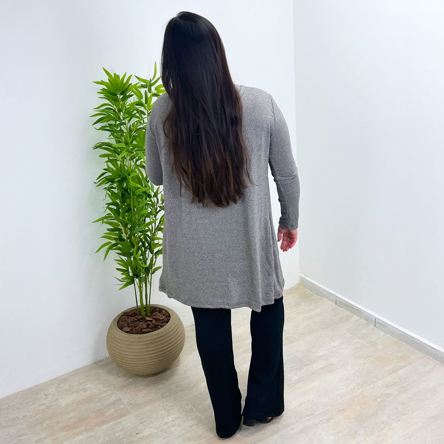 Feito com um toque macio e leve, ele é perfeito para todas as estações. O corte com pontas alongadas valoriza a silhueta, criando um visual moderno e versátil — ideal para usar aberto ou com cinto.