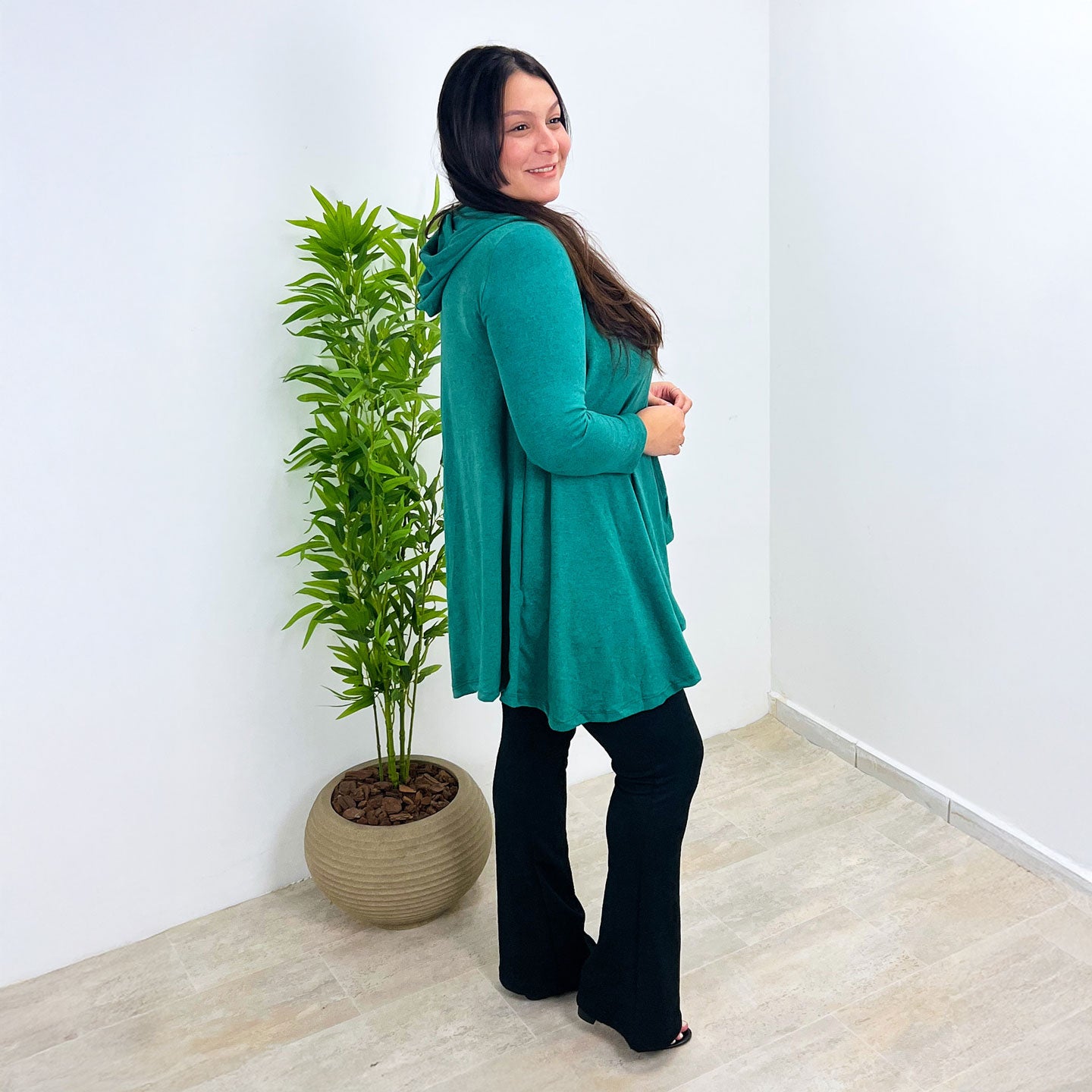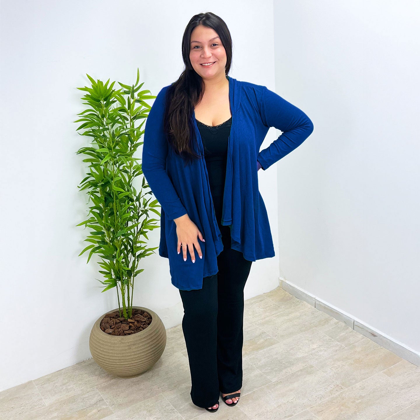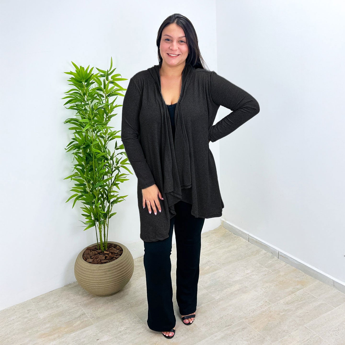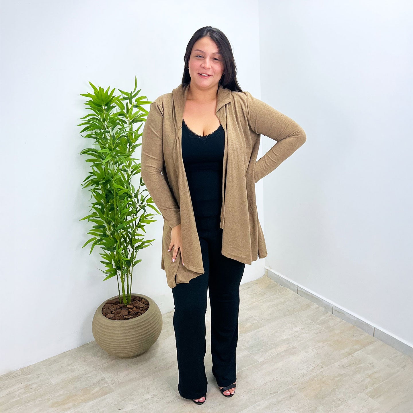 Feito com um toque macio e leve, ele é perfeito para todas as estações. O corte com pontas alongadas valoriza a silhueta, criando um visual moderno e versátil — ideal para usar aberto ou com cinto.