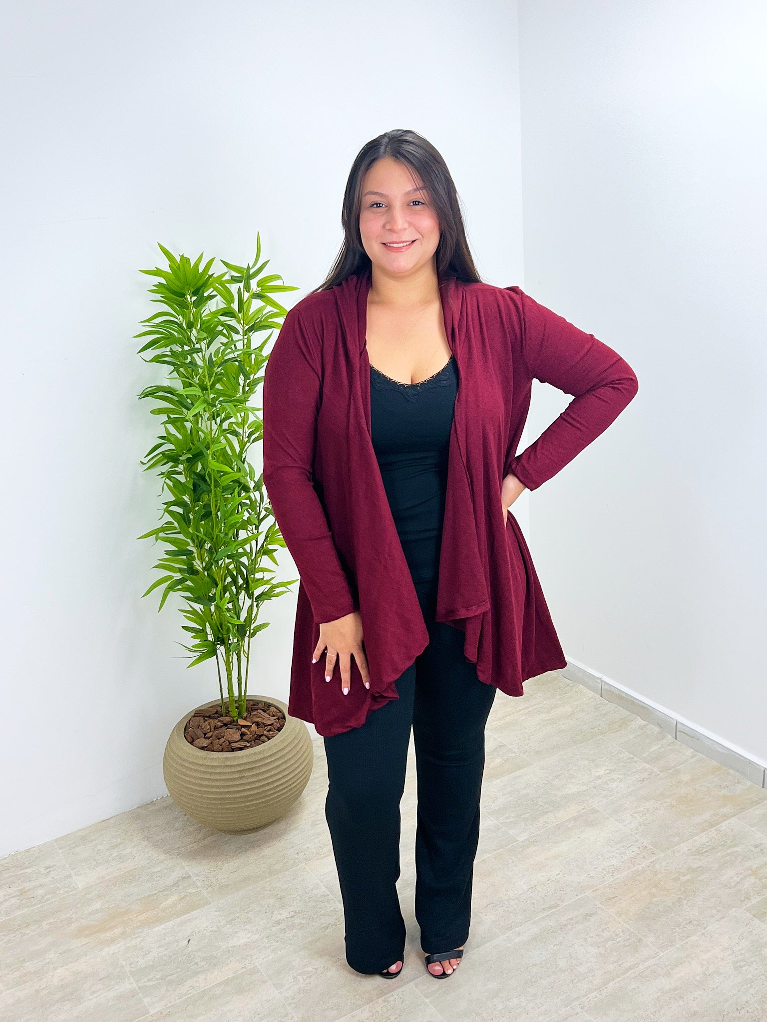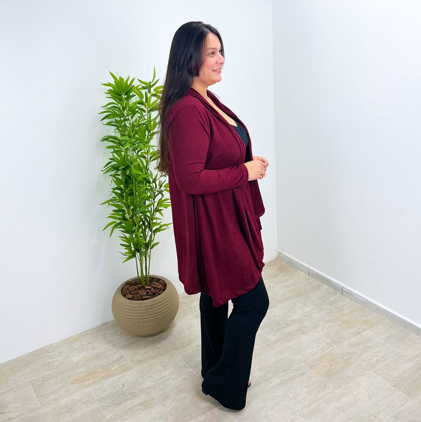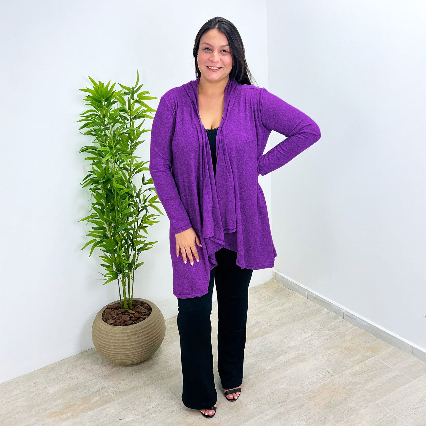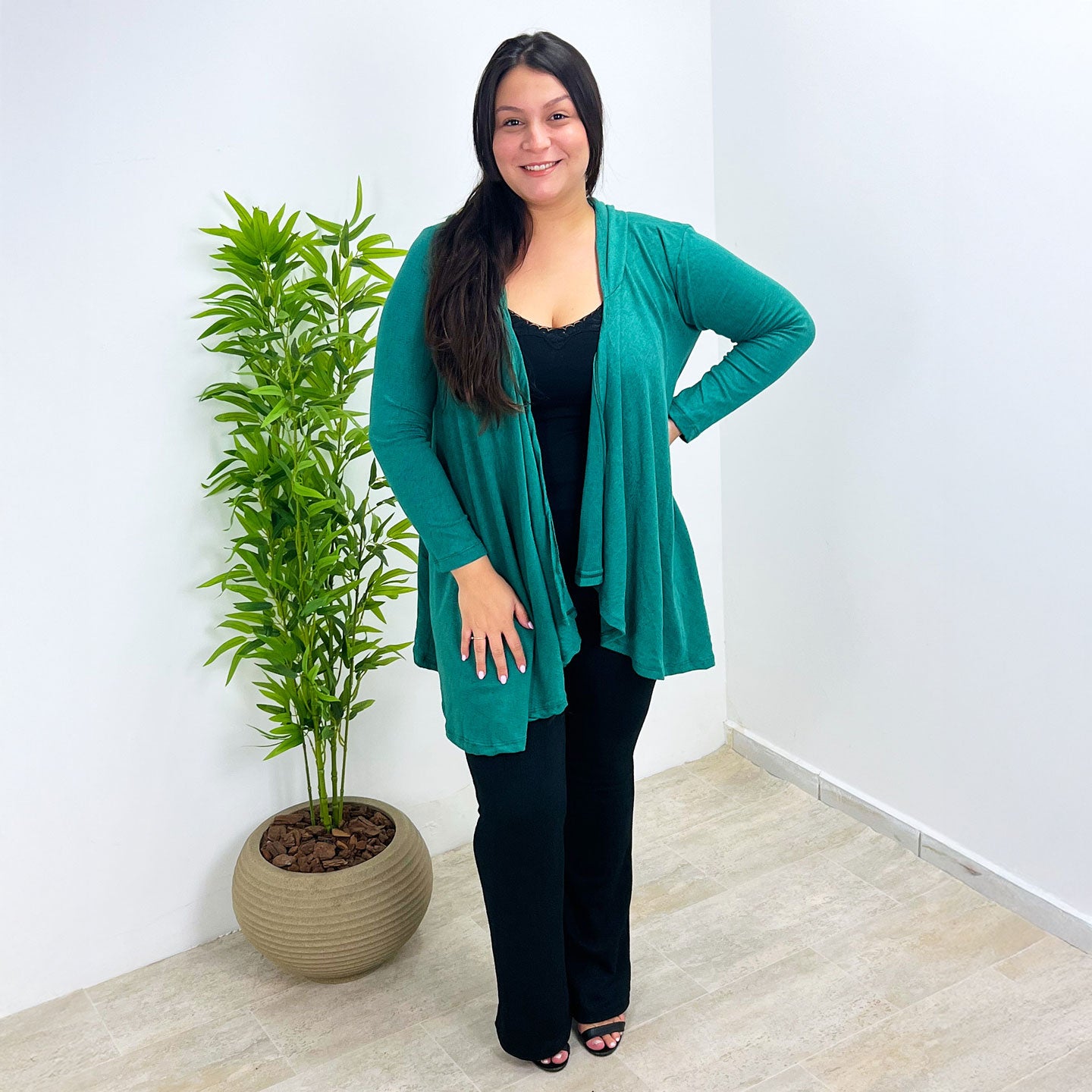 Feito com um toque macio e leve, ele é perfeito para todas as estações. O corte com pontas alongadas valoriza a silhueta, criando um visual moderno e versátil — ideal para usar aberto ou com cinto.
